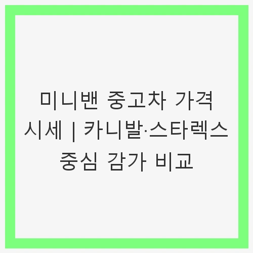 미니밴 중고차 가격 시세 | 카니발·스타렉스 중심 감가 비교에 대한 글에 오신 것을 환영합니다. 최근 몇 년간 미니밴의 수요가 급증하면서 중고차 시장에서의 가격 변동이 눈에 띄게 나타나고 있습니다. 특히 카니발과 스타렉스는 가족 및 캠핑족, 그리고 사업 용도로 많이 이용되며, 이들 차량의 가격과 감가상각에 대한 정확한 이해는 보다 현명한 구매를 가능하게 합니다. 오늘은 이 두 차량의 중고차 시세와 감가상각 현황을 자세히 살펴보겠습니다.